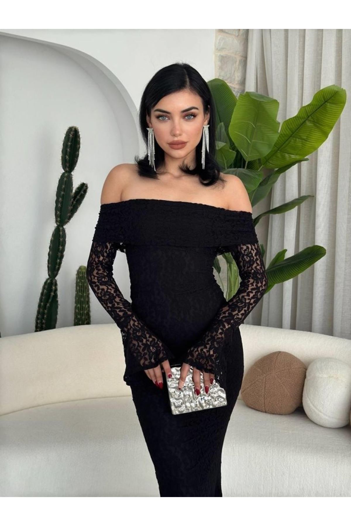 Kadın Straplez Dantel Arya Elbise